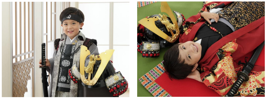 兜は話題の「丸武産業」が制作。特許取得の子ども向け鎧兜【かる冑】の兜をベースにさらなるオリジナル仕様で進化した兜です。武将気分を盛り上げる羽織や、刀などの小物もご用意しています。刀を勇ましく構えて、戦国武将気分を満喫しながら、臨場感あふれる撮影をお楽しみいただけます。和装でも洋装でも撮影できる「かっこいい」「かわいい」の二刀流の撮影ができます。この秋、スタジオアリスでホームラン級の笑顔でハレの日を盛りあげませんか。