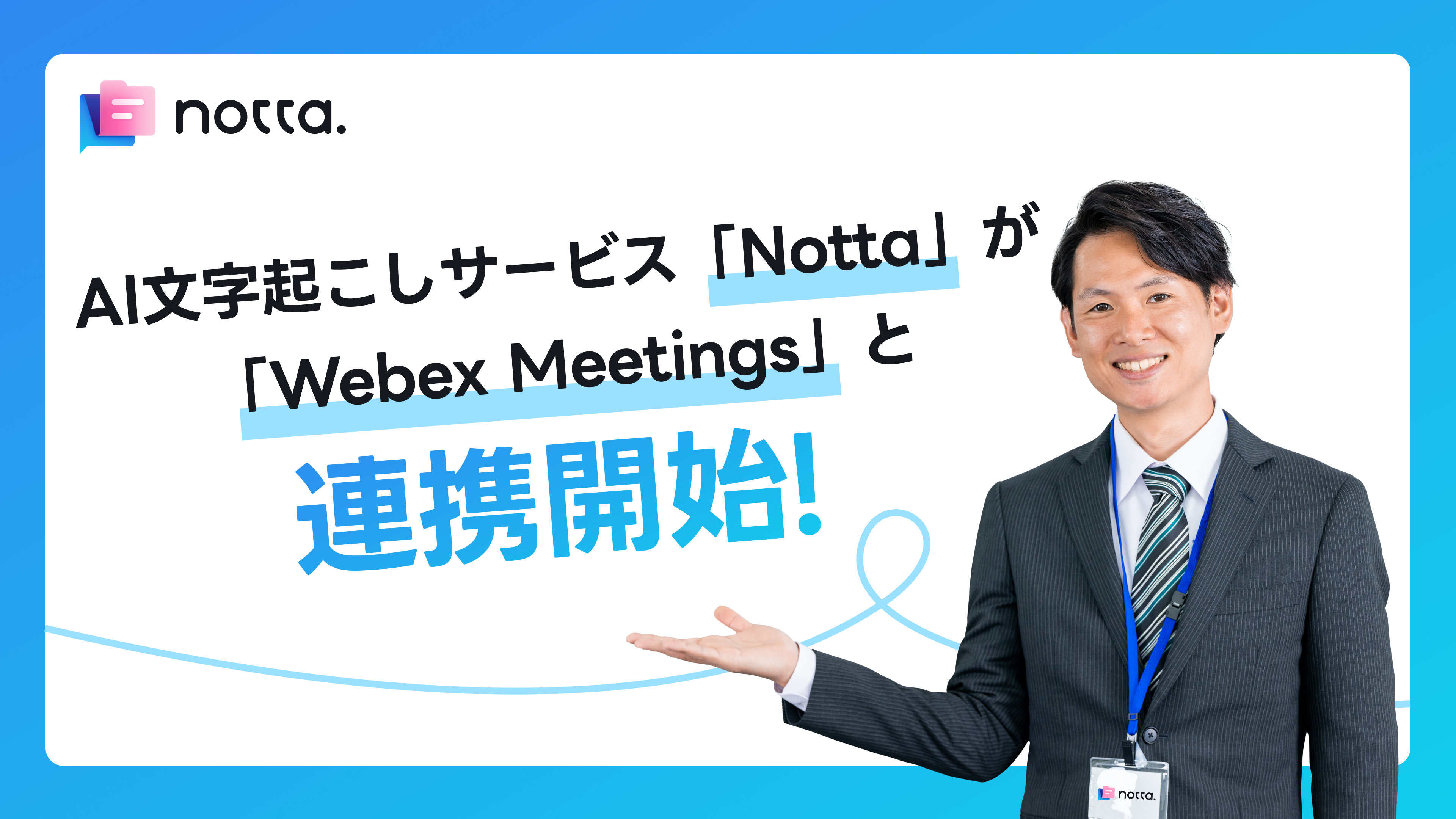 当社は、新たな一歩を踏み出し、AI文字起こしサービス「Notta」を「Webex Meetings」と連携させることで、効率的なコミュニケーションと効果的な情報整理を実現するご提案をしております。「Notta」は、「Webex Meetings」内での会話から、AIが必要な情報を録音・文字起こしし、それを要約する機能を提供します。