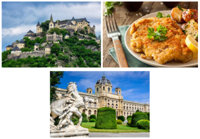 この度公開した世界一周旅行教材「オーストリア」は、オーストリアを代表する「シェーンブルン宮殿」「ホッホオスターヴィッツ城」などの観光地・食・文化を英語で楽しみながら学ぶことができます。