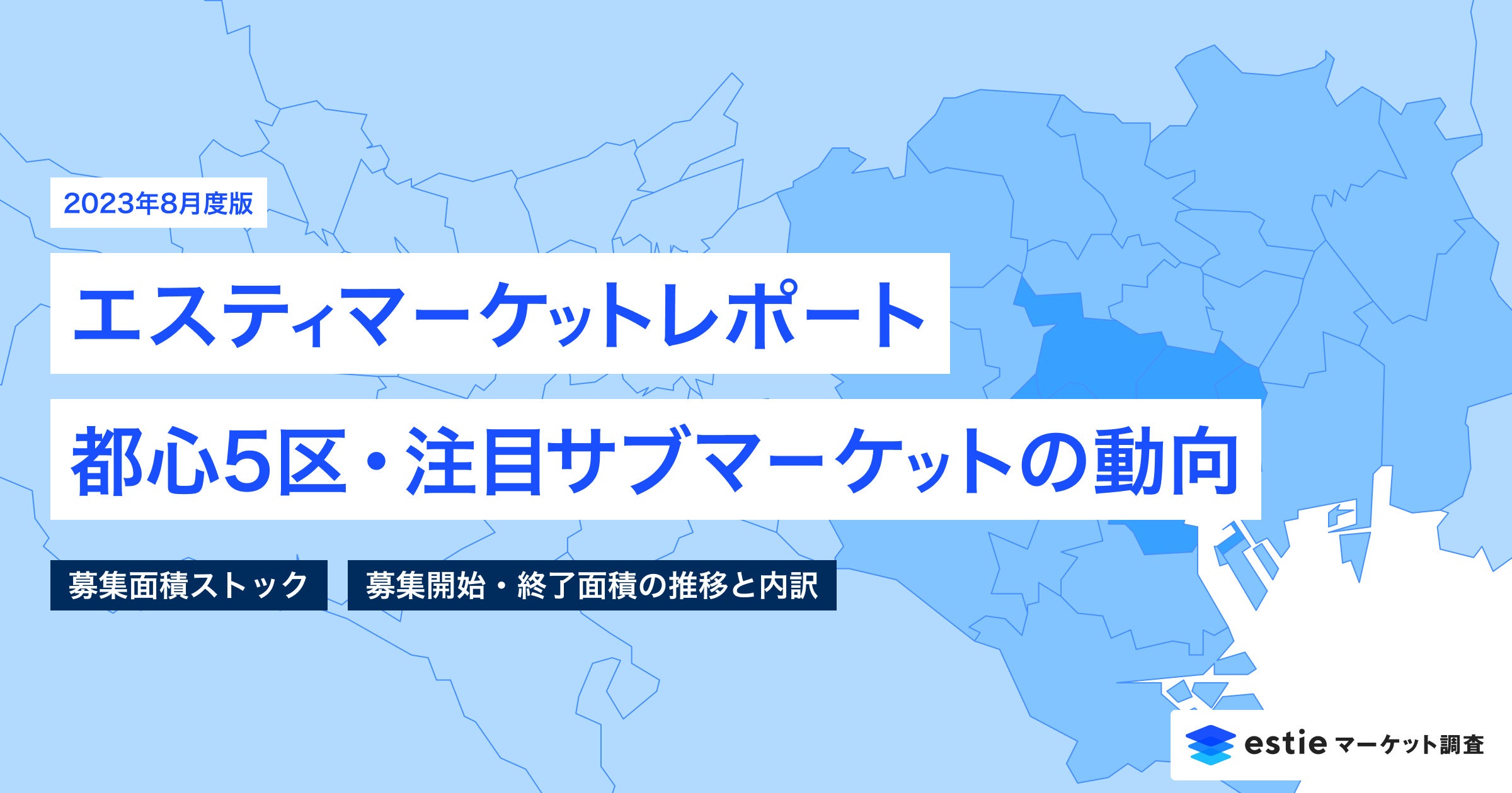 2023年7月の都心5区では、募集開始面積が前月比51.5%減の54,394坪、募集終了面積は前月比3.1%増の86,904坪となり、募集面積ストックは前月比4.5%減の692,824坪でした。行政区別では、募集終了面積が前月比大幅減となった新宿区を除き、中央区と港区の募集開始面積が前月比で60%以上減となるなど各区ともに募集終了面積が募集開始面積を上回り、募集面積ストックは前月比で減少するトレンドとなりました。