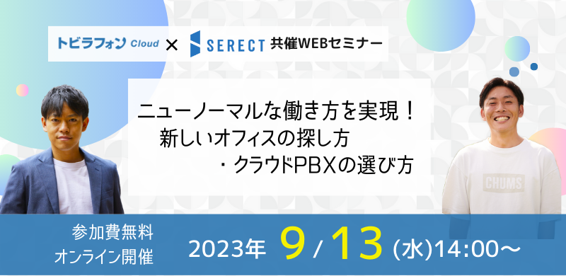 クラウド電話システムを展開する「トビラフォン Cloud」とオフィス移転の専門家である「SERECT」の両社より、コストを抑えつつ組織の生産性を高める手法についてご紹介します。