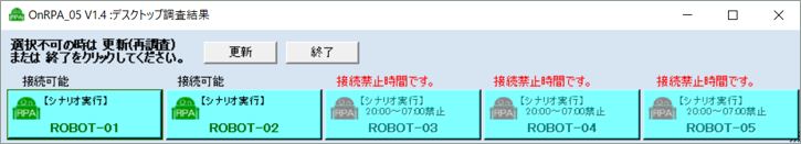 設定時間になると自動的にロボPCを選択できないようにボタンを無効化します。