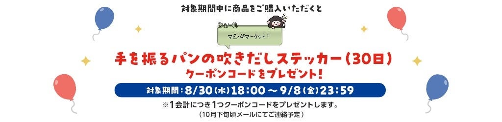 たします。デフォルメされたパンが手を振っている可愛らしいデザインとなっておりますので、