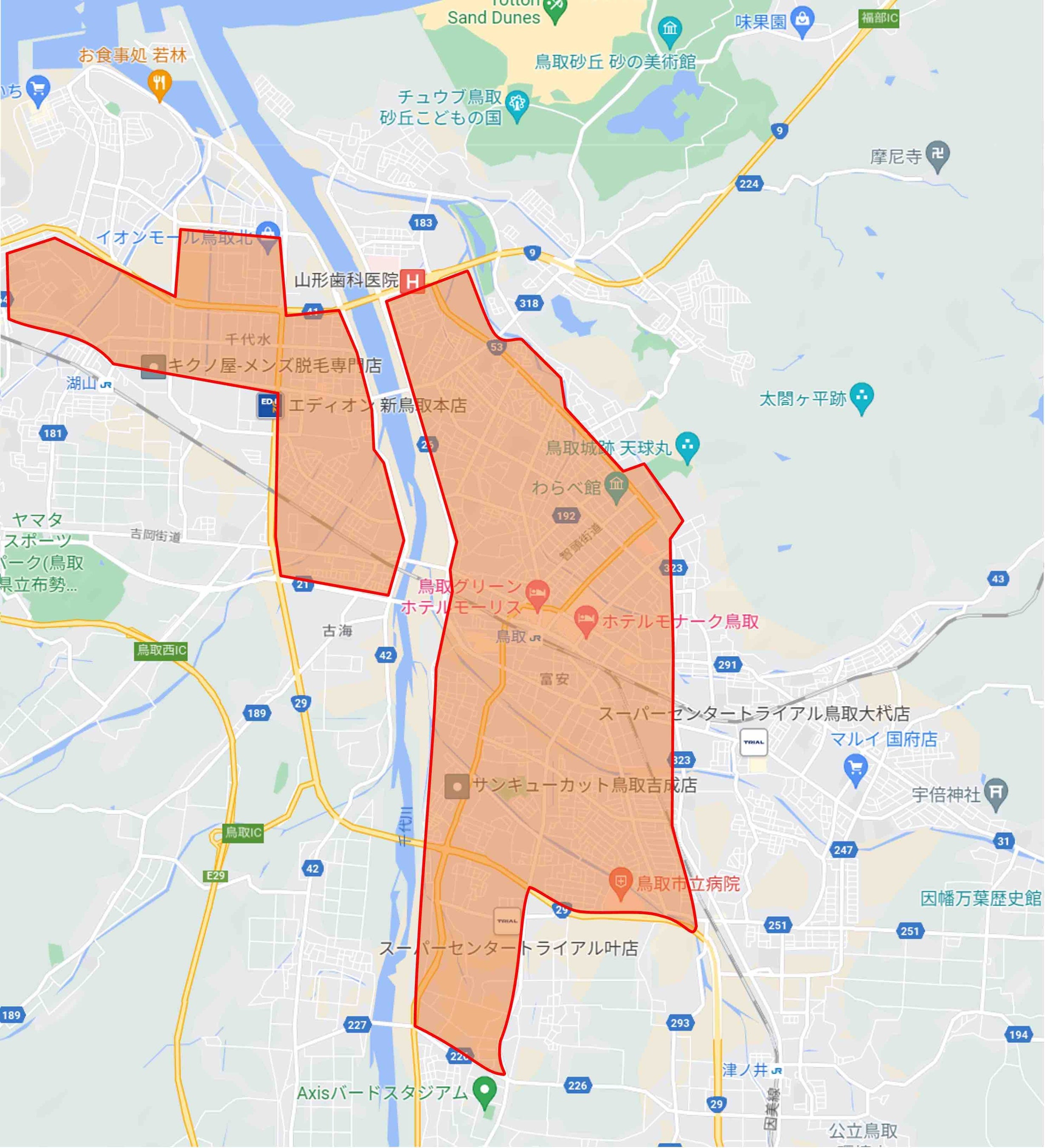 対象地域:鳥取県鳥取市内(赤枠内が対象エリアとなります)