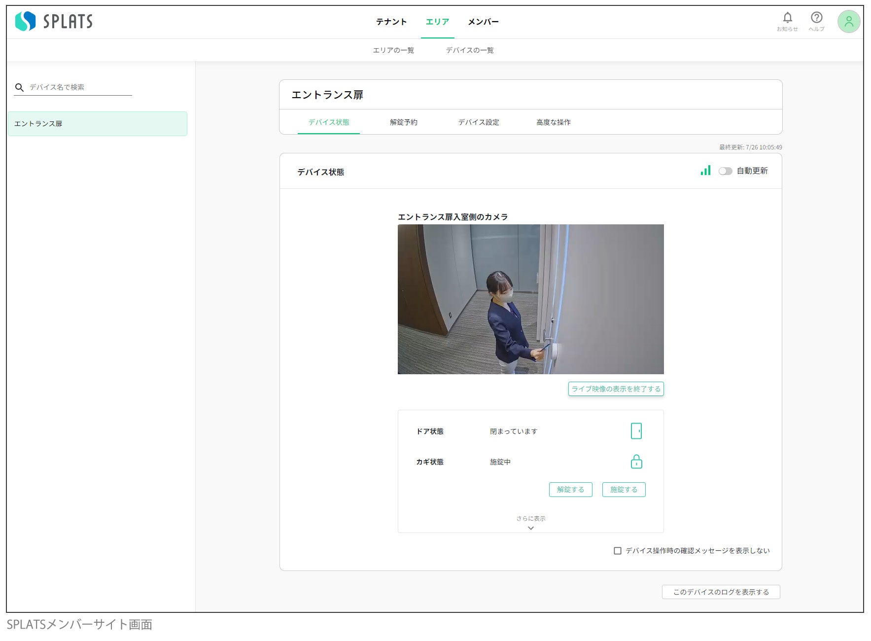 カメラが設置されている扉を選択することでリアルタイムの映像が確認できます。