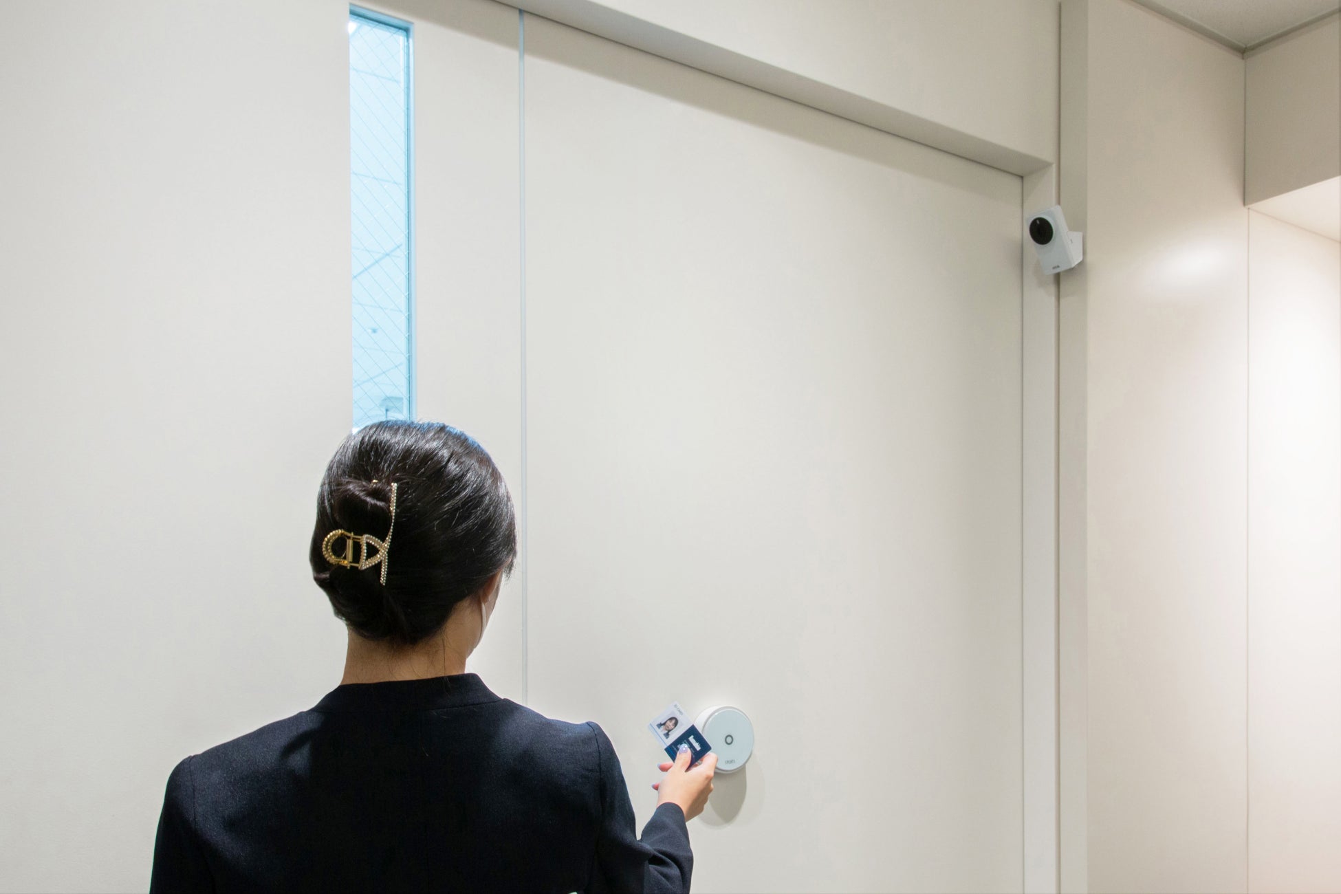 同一の画面から扉の施解錠が可能なので、ICカードを所持していない利用者を臨時で入館させたい場合や搬入業者の出入りを許可する場合などに、セキュリティを担保しつつ遠隔から操作することができます。