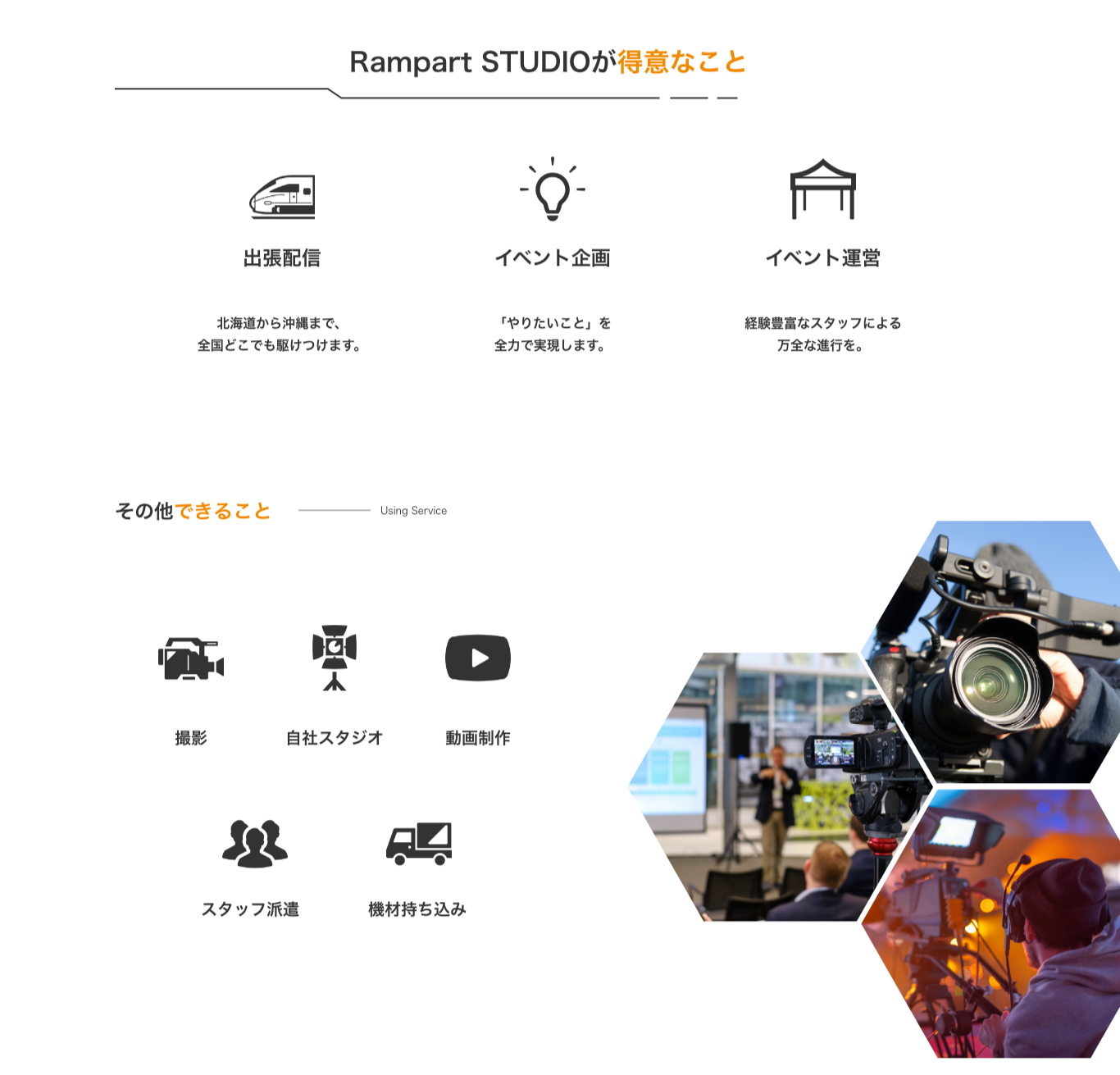 【Rampartスタジオができること】(https://rampart-live.com/#service)