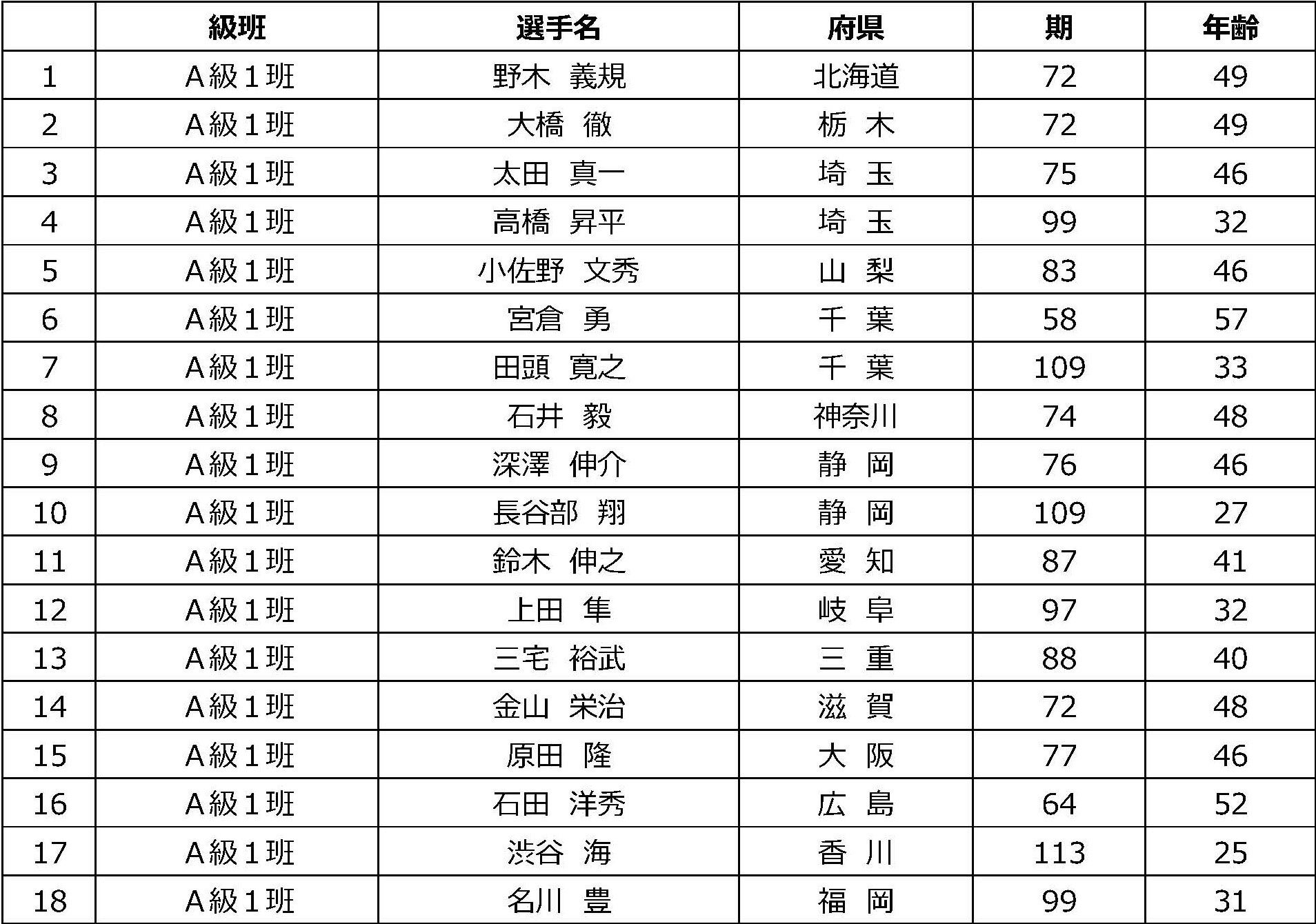 ◇「PIST6 Championship 2022-23」 セカンドクォーター PIST6カップ1 出場選手一覧