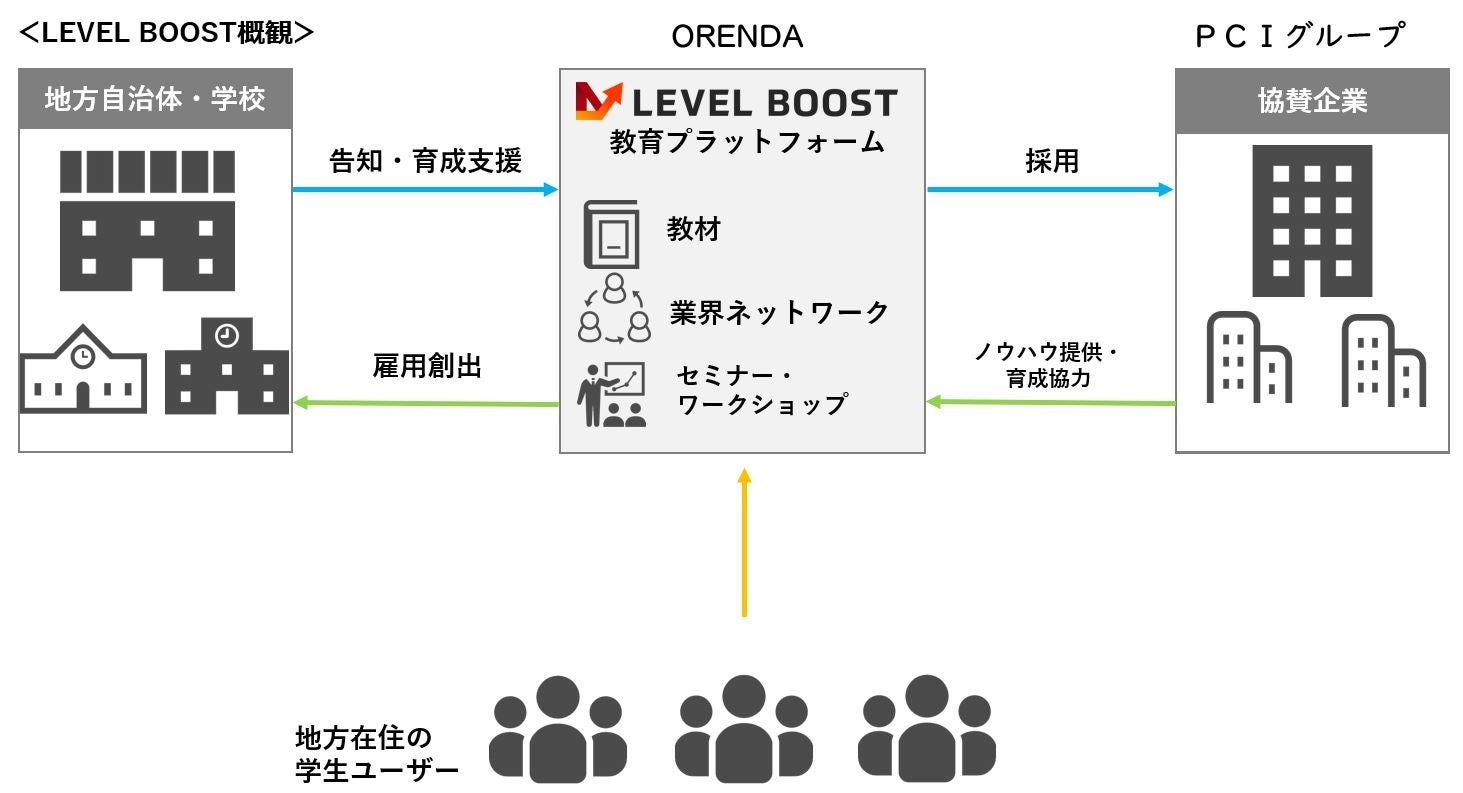 株式会社ORENDA(本社:東京都港区 代表取締役:澁谷陽史、以下ORENDA)が運営する、【地方創生×クリエイター※1育成】教育プラットフォーム『LEVEL BOOST』(レベルブースト)に、PCIグループの参画が決定したことをお知らせします。