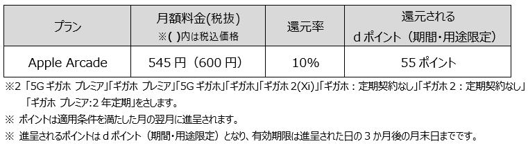 (2) 「Apple Arcade」をドコモでお申込みいただくこと。