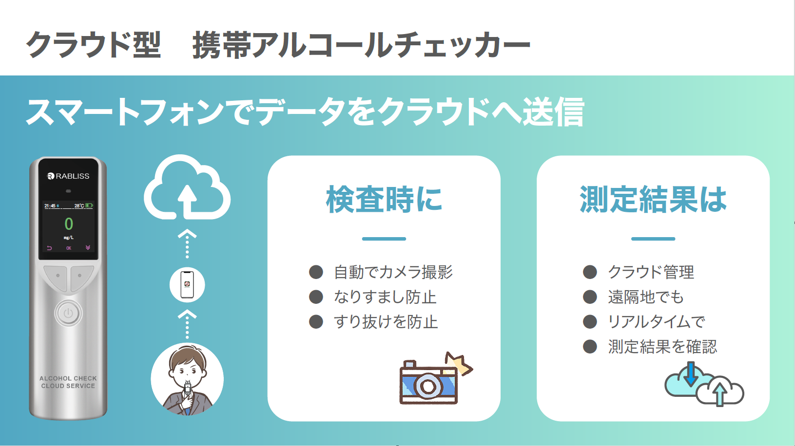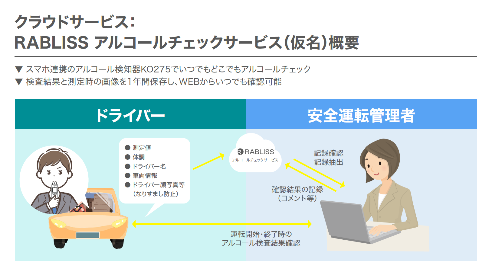 RABLISSの専用アプリを使うことで、ドライバー側・管理者側ともに、アルコールチェックに関する業務が非常にカンタンな作業になります!