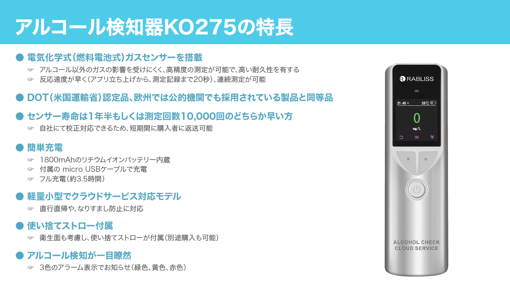 このたび、小林薬品株式会社はクラウドサービスの提供を開始します。その先駆けとしまして、クラウドサービスを駆使した最先端のアルコールチェッカーが小林薬品より新発売となります。(9月上旬頃予定)