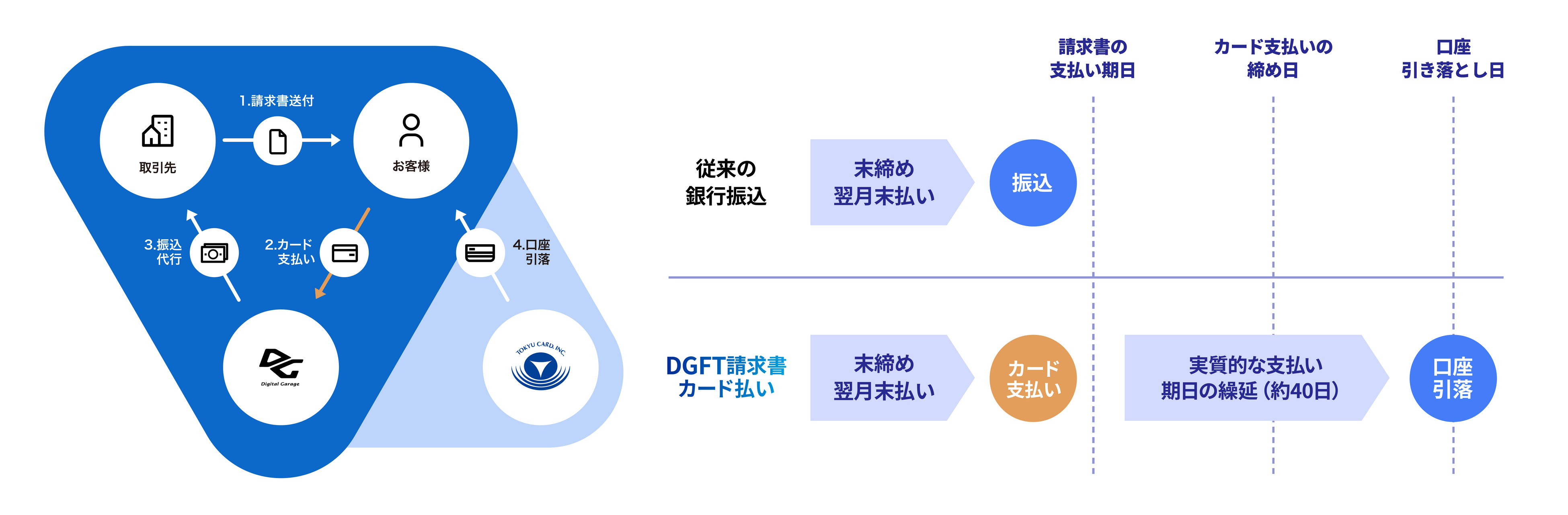 本サービスは、東急カードのビジネスカードを利用するお客様を対象に、銀行振込の請求書をカードでの支払いに切り替えることで、実質的な支払い期日を繰延できるB2B向け決済サービスです。