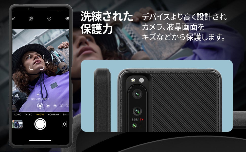 厳選されたプレミアムTPU(熱可塑性ポリウレタン)素材を用いり、柔軟性・耐久性・耐衝撃に優れています。日常で発生する刺激から保護するため液晶画面、カメラ周りを高くデザインしました。更に、内側パターンと角の「エアースペーステクノロジー」設計で、落下のように製品に加われる衝撃を効率よく吸収します。