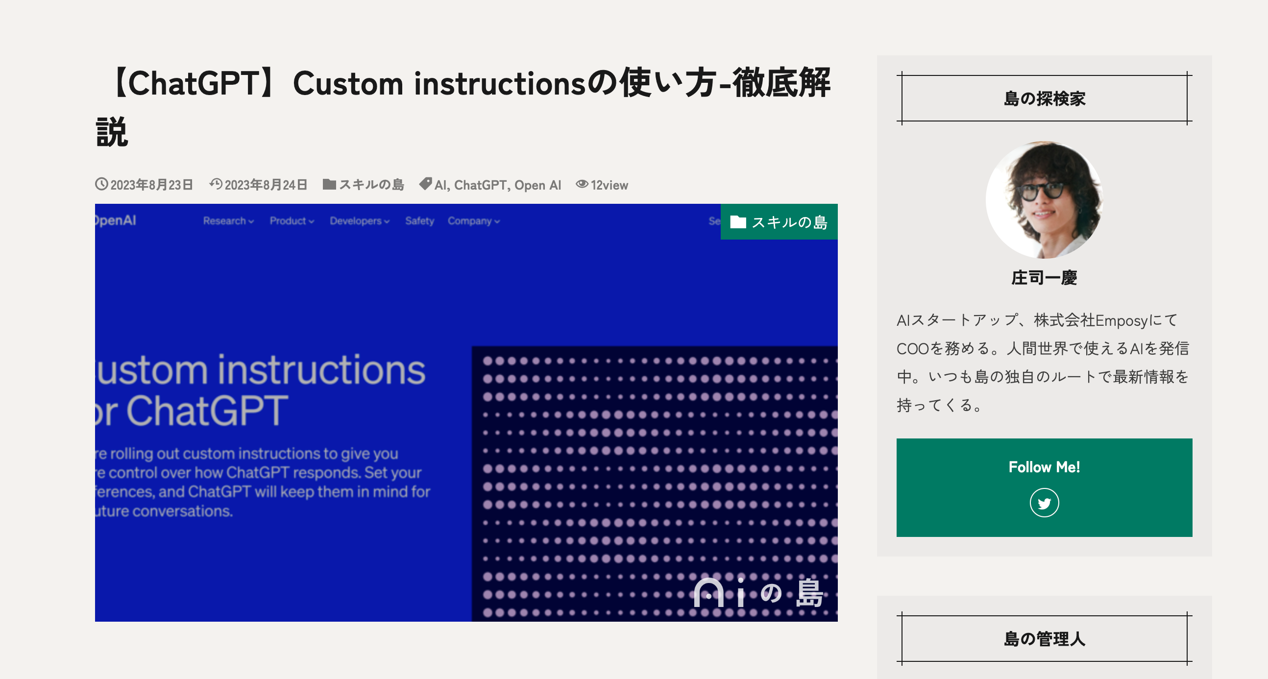 記事:https://ai-island-media.com/2023/08/23/custom-instructions/