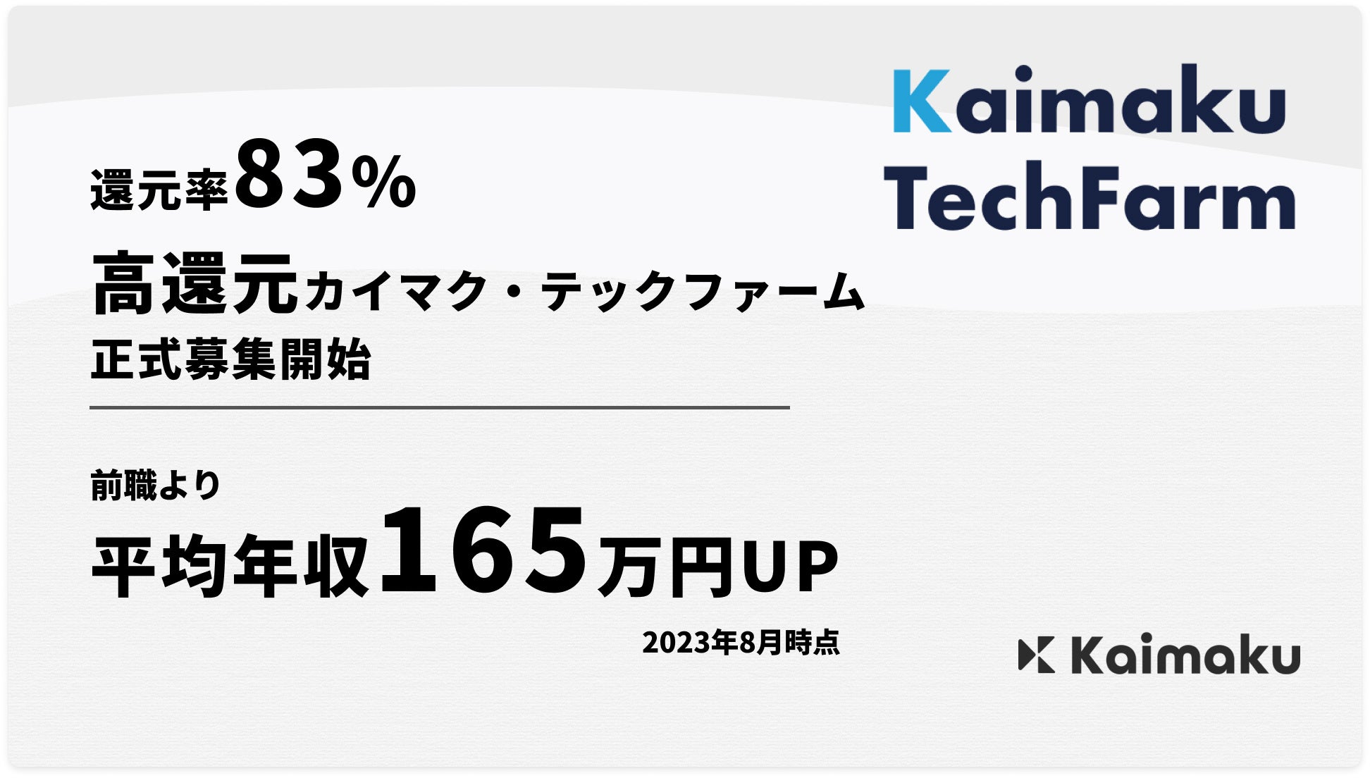 カイマク・テックファームは、エンジニアの年収UP、そして年収が上がり続ける仕組み作りに徹底的にコミットしています。
