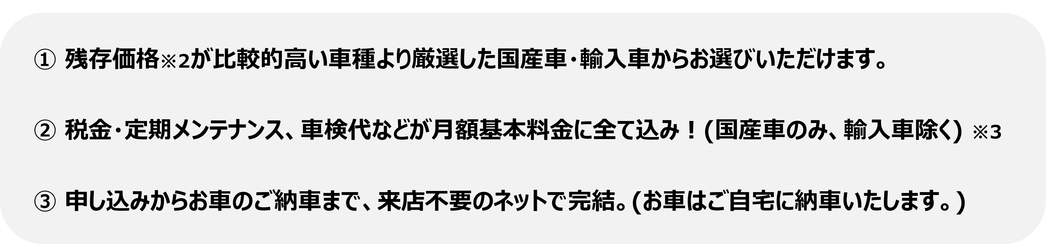 ※2 残存価格とは、リース期間中正常な使用に基づいた車両のリース契約満了時における想定下取価格です。