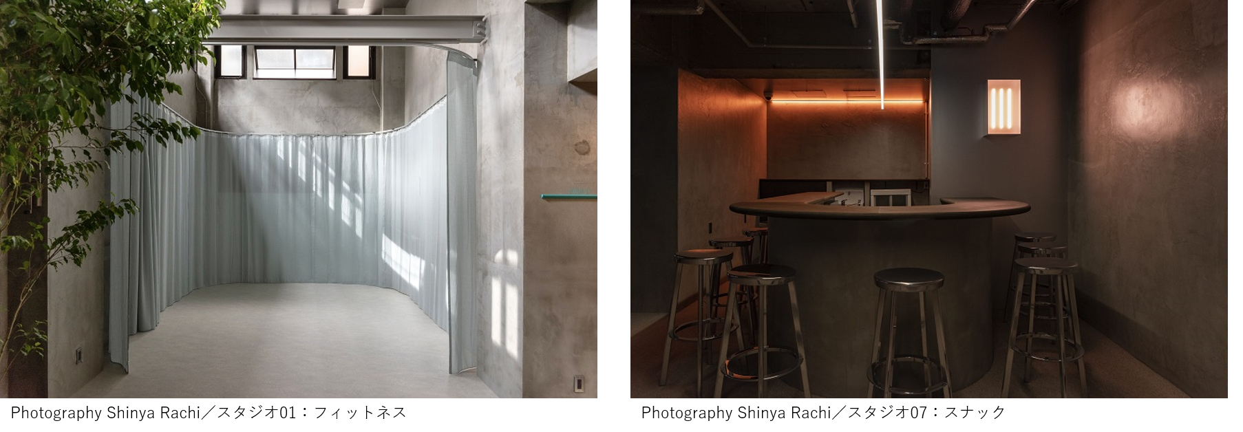 パーソナルトレーニングに最適な全面鏡付きの「スタジオ01:フィットネス」や、飲食店営業許可付きの「スタジオ07:スナック」など、様々な用途での活用を想定した8つのスタジオは、会員登録で入居者以外も利用可能(有料)です。これらのスタジオは、“いつかやりたかったこと”を試せるリアルスペースとして街に開かれます。