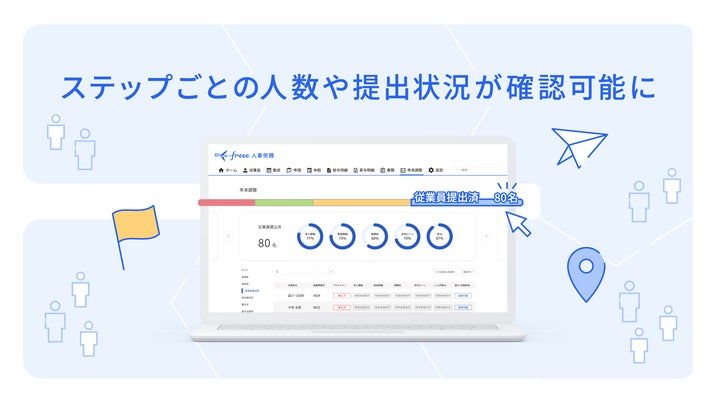 従来、年末調整情報の収集は入力項目分類ごとの進捗を円グラフで表示していましたが、本来別々で管理すべき[管理者が行うタスク]と[従業員が行うタスク]を分けて表現しておらず、freeeだけで進捗管理を行っていただくには不完全な状態でした。今年度から進捗フェーズを年末調整のホーム画面上の一覧で可視化し、各フェーズごとの書類の進捗状況を直感的にわかりやすい設計に刷新しました。