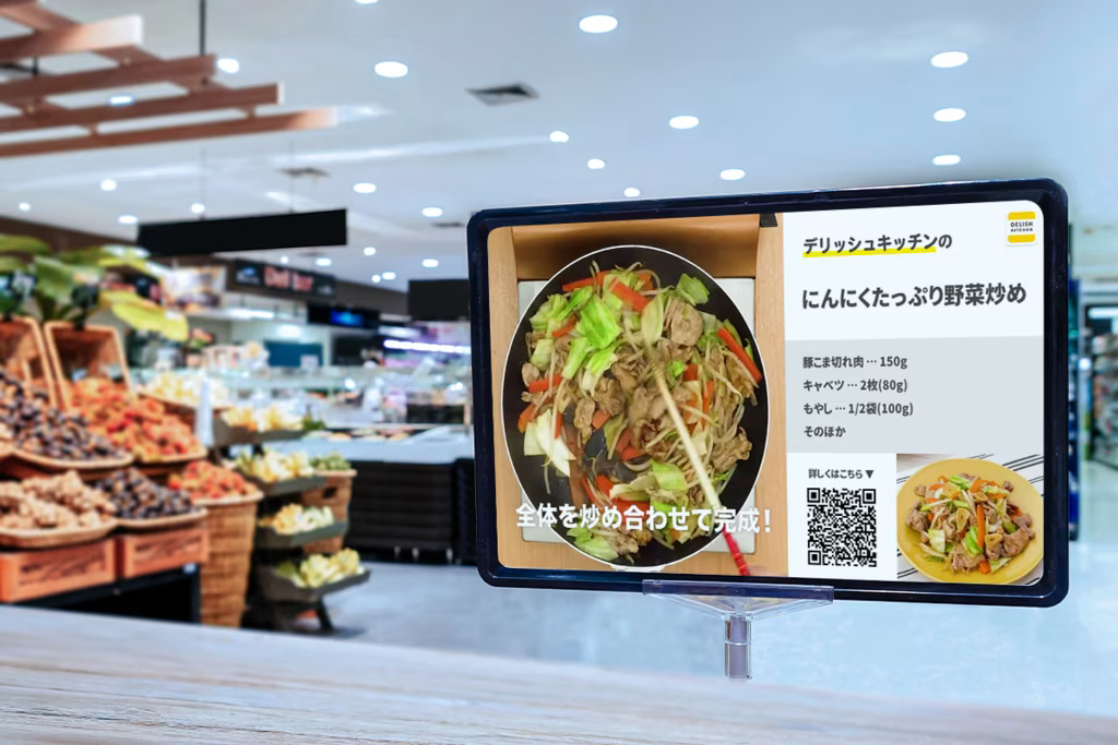 ・レシピ動画を放映し、店頭での購買を後押しするサイネージ