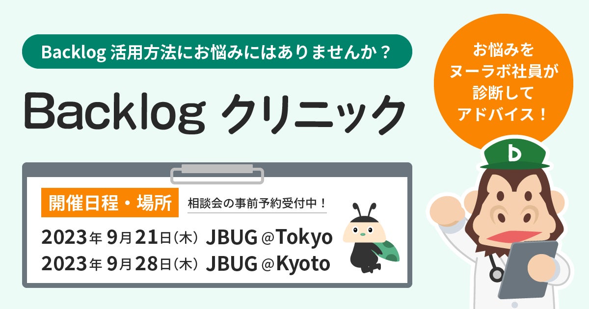 まずは2023年9月に東京と京都で行われる、BacklogのユーザーコミュニティJBUG(ジェイバグ)のイベント内(各回18:30から受付開始)で開催します。