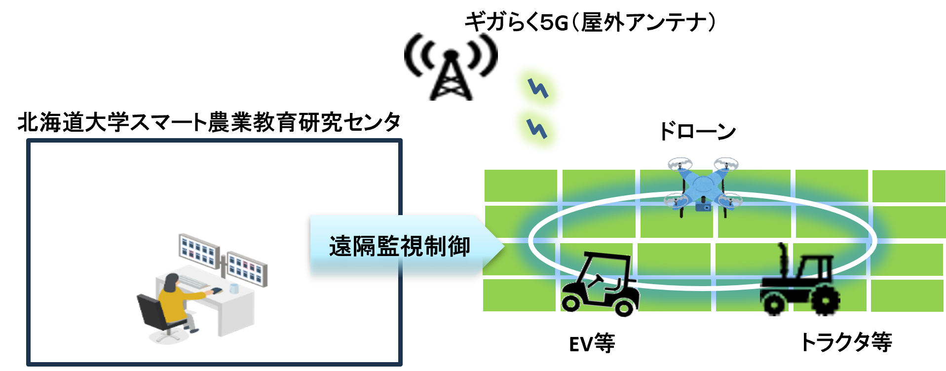 キャリアグレードの本格的な5Gスタンドアローン機能と事前手続きから設計・構築・運用までのトータルITO(ITアウトソーシング)をワンパッケージにしたマネージド型のローカル5Gサービス「ギガらく5G」※1を商用局※2として北海道初の提供を行います。高速大容量・低遅延といった無線アクセスの屋外型利用により、同施設近傍の広大な圃場において無人トラクタの遠隔監視制御をはじめとした、様々なスマート農業への活用が見込まれています。今後もさまざまな企業、自治体、大学などのお客さまと共にローカル5Gを活用したユースケースの共創、それらの社会実装に向けた先端技術を育成する環境の提供を目指していきます。