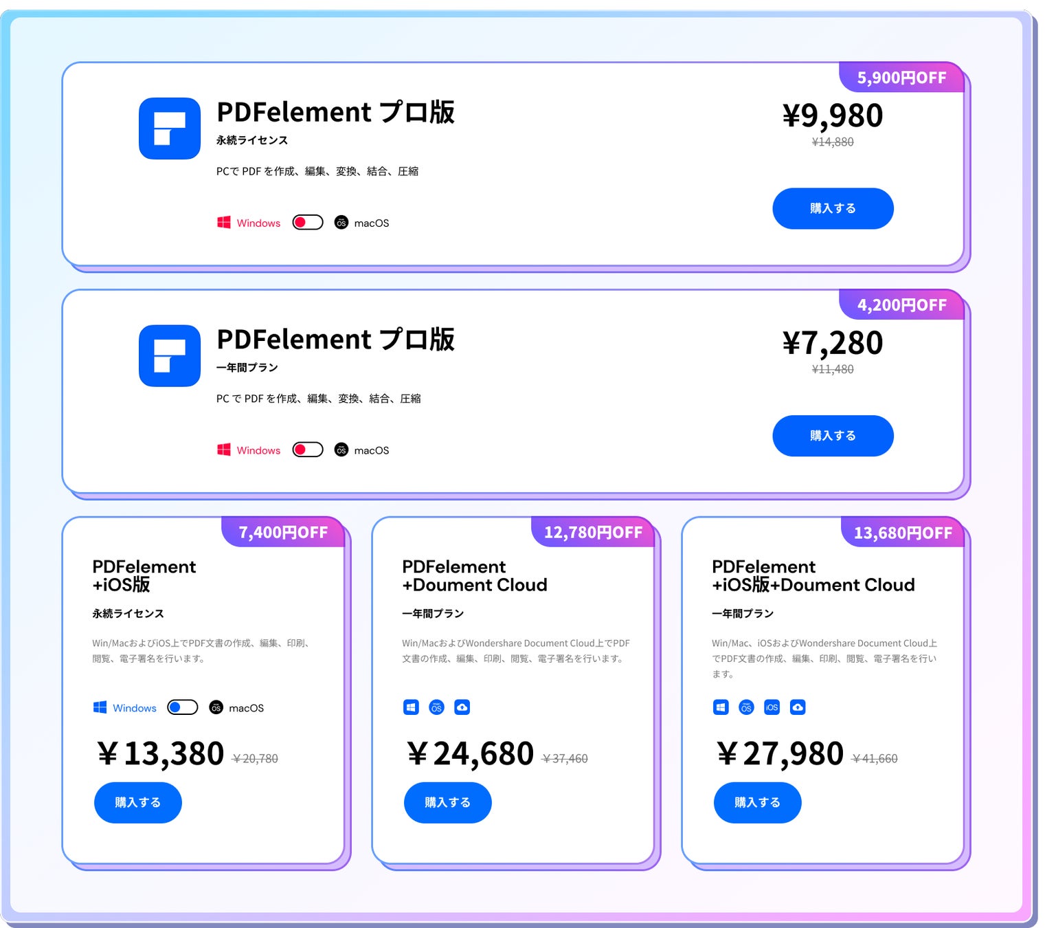 PDFelement 5, 6, 7, 8 ,9,Windows/Mac 版[永続ライセンス]ユーザー向けの限定キャンペーンです!