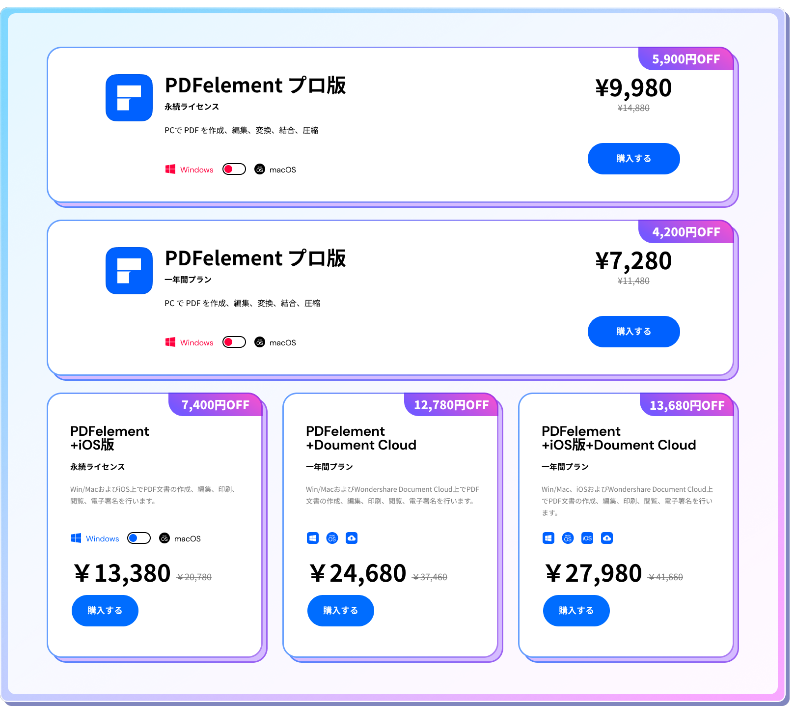 PDFelement 5, 6, 7, 8 ,9,Windows/Mac 版[永続ライセンス]ユーザー向けの限定キャンペーンです!
