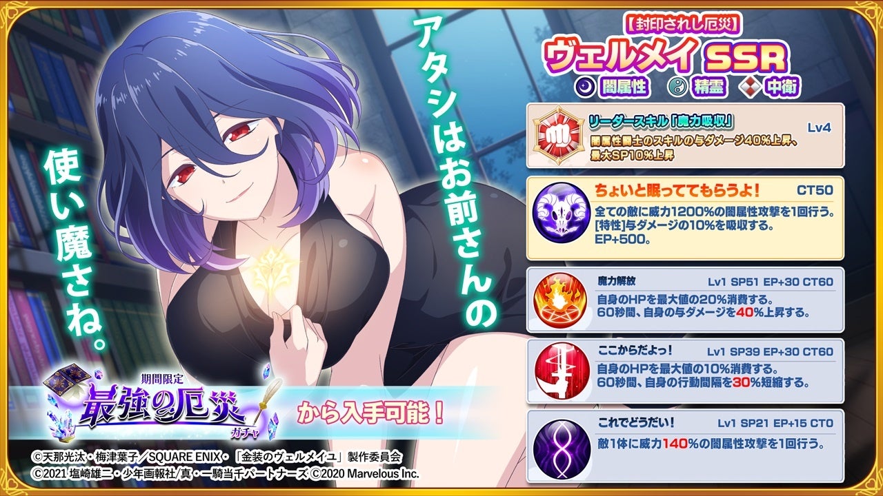 本日開催の「最強の厄災ガチャVol.1」では、「【封印されし厄災】ヴェルメイ」(CV:内田真礼)が、