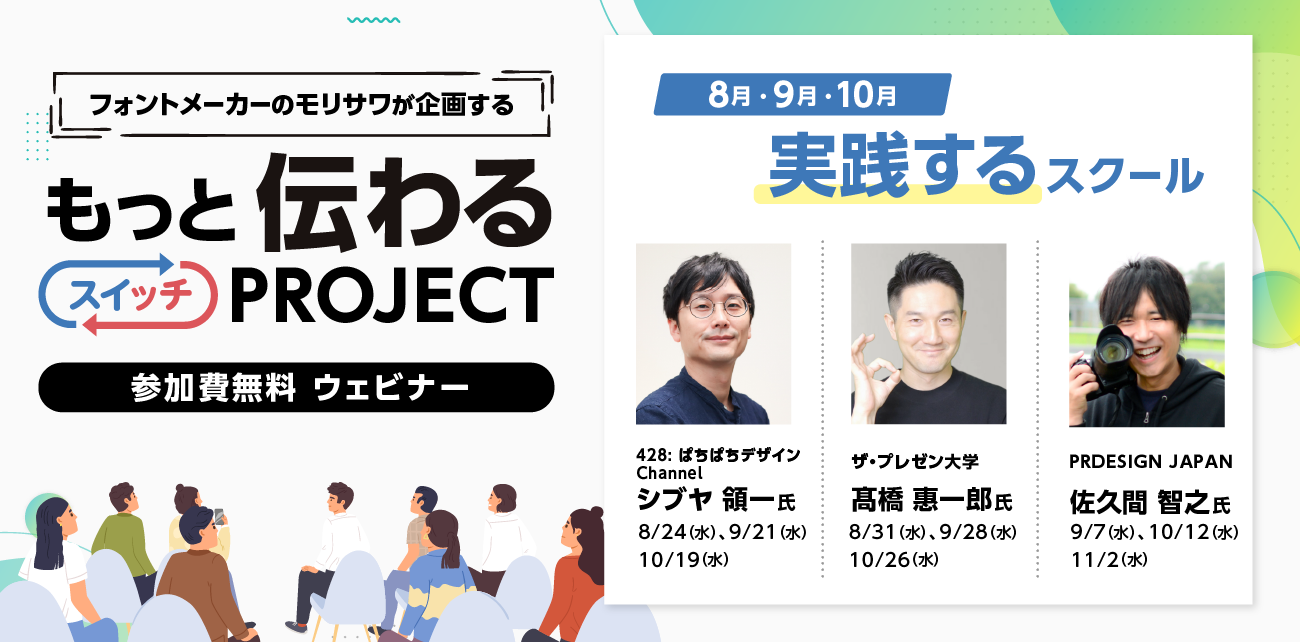 制作物を作ってみたものの、見る人に本当に「伝わる」かどうかわからない…。そんな不安を抱えている方も多いのではないでしょうか?受講者が作成した資料をもとに、ゲスト講師とモリサワ講師が、正確でかつ効果的に相手に伝わる資料のノウハウをアドバイスします。