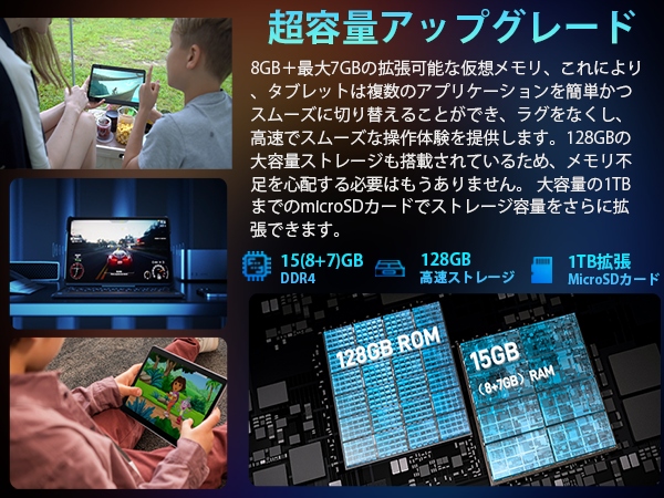 DOOGEE T20S アンドロイド タブレットには128GBの大容量ストレージも搭載されているため、メモリ不足を心配する必要はもうありません。 大容量の1TBまでのmicroSDカードでストレージ容量をさらに拡張できます。(FAT32、exFATフォーマットカードは別売り)