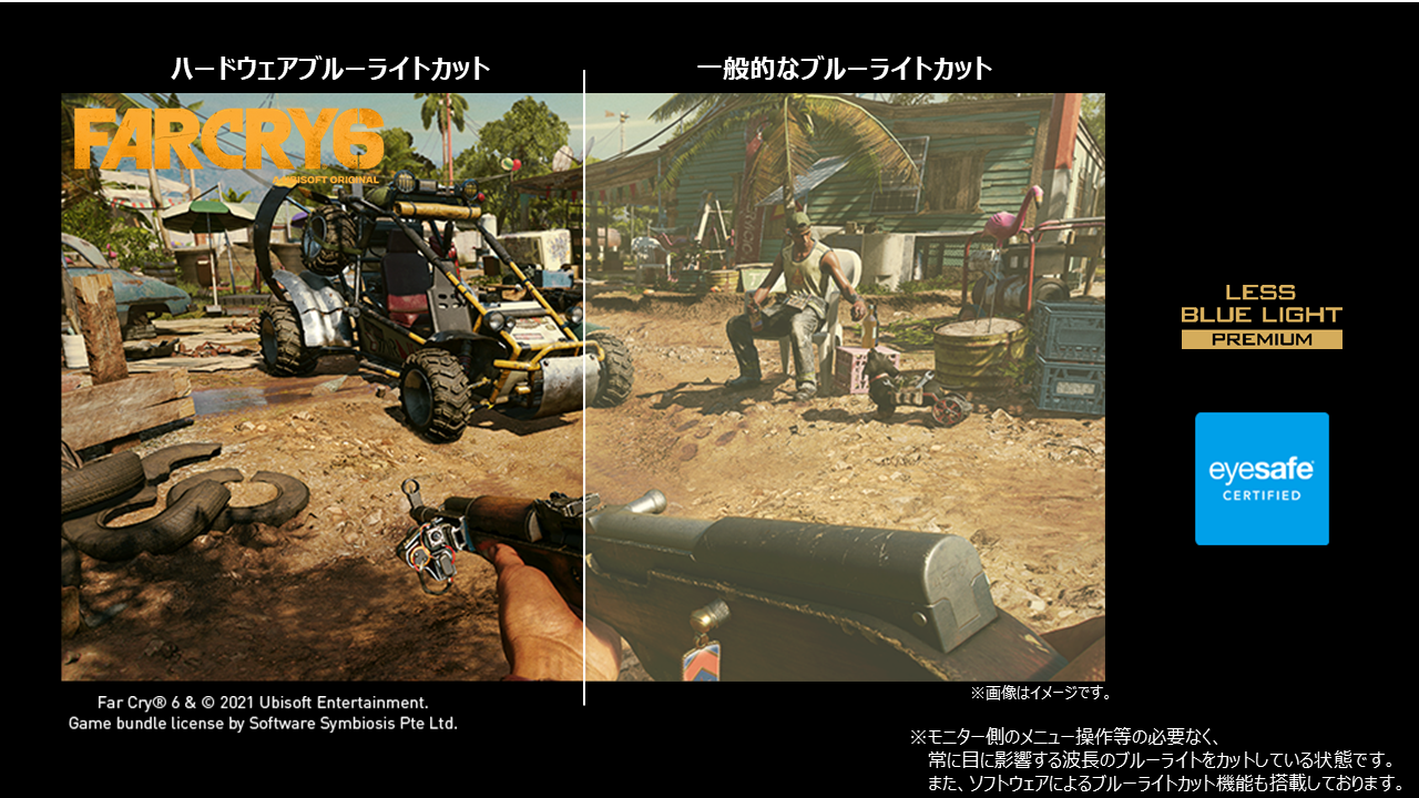 目に影響する波長のブルーライトだけをハードウェアレベルでカットすることにより、