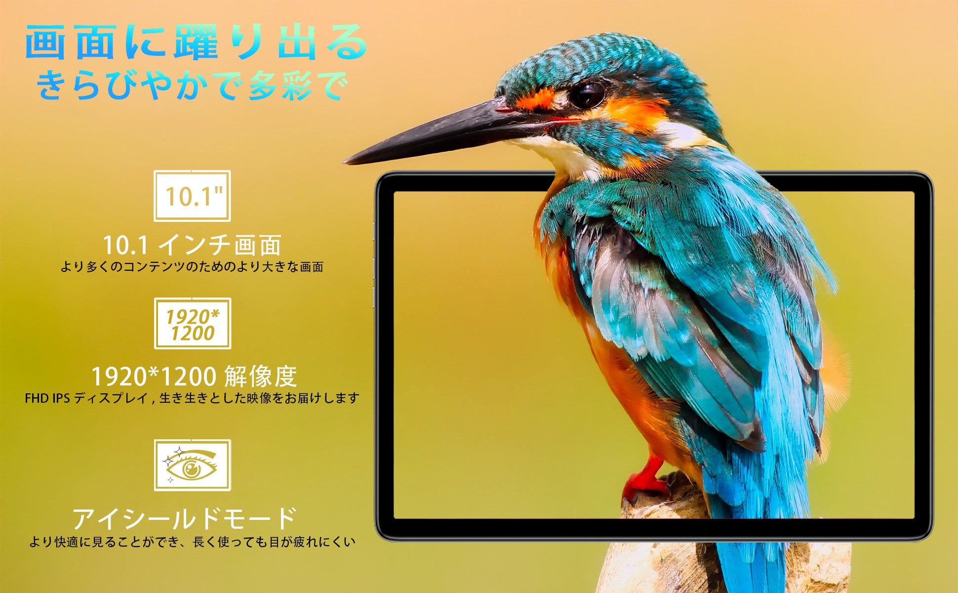 Npad Air タブレット 10インチ の大画面、解像度 1920*1200 の HD IPS スクリーンを採用し、すべてのディテールが精巧で人目を引きます。世界のカラフルさを真に復元し、リアルで鮮やかな画像をもたらします。 電子書籍 タブレット 、動画用タブレット 、ゲームタブレットとしても良いチョイスです、システム内蔵の目の保護モードをオンにすると、長時間使用しても快適に視聴できます 、目が疲れません。