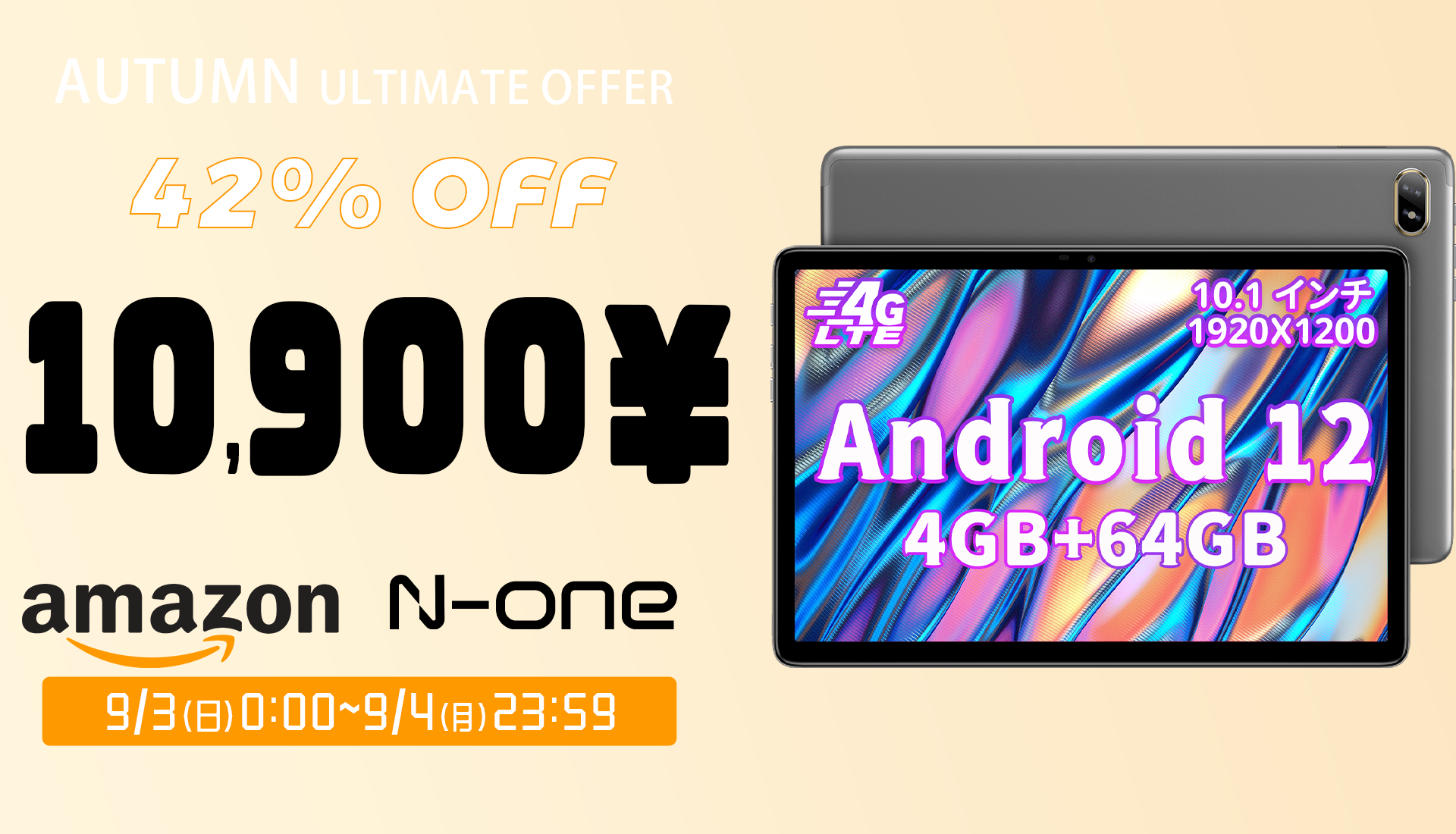 N-ONE Amazon季節先取りセール祭 高性能タブレット 期間限定セール,9月3日(日)0:00 ~ 9月4日(月)23:59