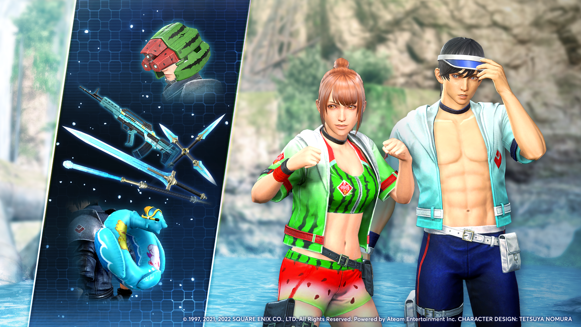 『クライシス コア -ファイナルファンタジーVII-』に登場したザックスの水着のスキンや、剣スキン「ビーチパラソル」が「セレクトショップ」にラインナップ!