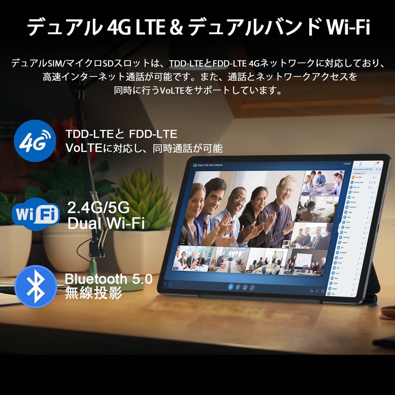 • 4G LTE SIMフリー+デュアルバンドWi-Fi、常にインターネットに接続する