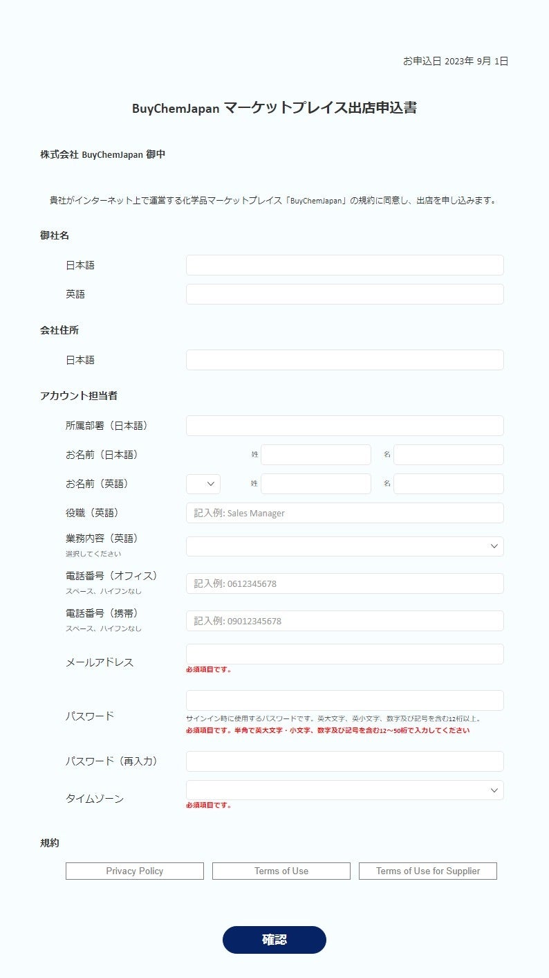BuyChemJapanの新たな試みであるメーカーセルフ登録機能は、オンライン上でアカウント登録が可能で、BuyChemJapanトップページからわずか3クリックで登録完了確認画面にアクセスできます。さらに会社情報や商品掲載のサポートを1on1形式で支援することで安心で安全な海外市場へのアプローチを可能にします。