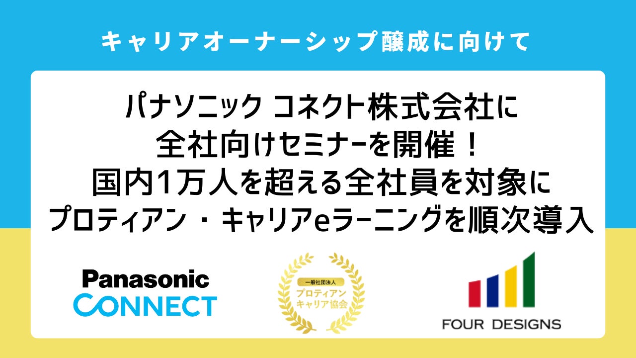 キャリア自律推進の一環として、2023年5月には弊協会代表理事 田中研之輔によるセッションの開催、2023年7月中旬からは国内1万人を超える全社員を対象としてプロティアン・キャリアeラーニング(基礎編)を順次導⼊し、人的資本最大化に向けた取り組みの強化をスタートしました。個人が持つ能力を最大限に解き放てるよう、4designs株式会社が支援いたします。