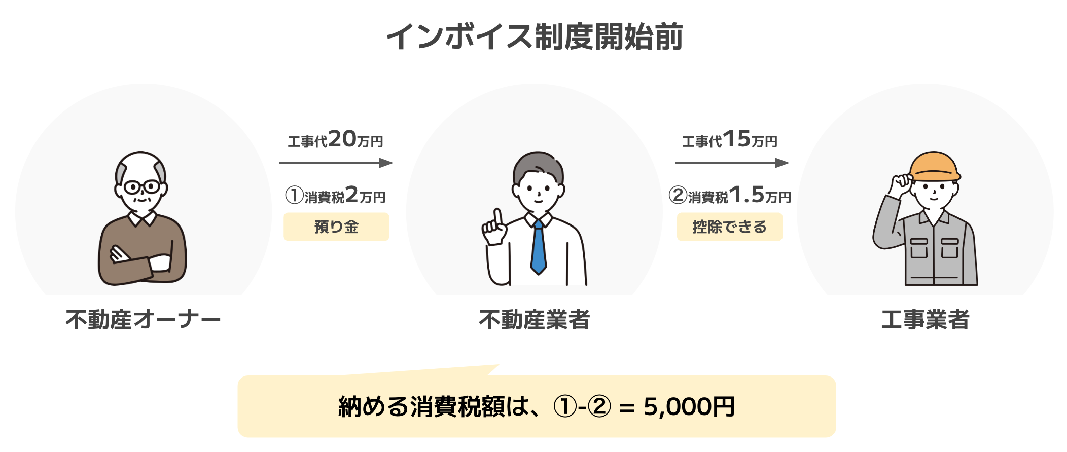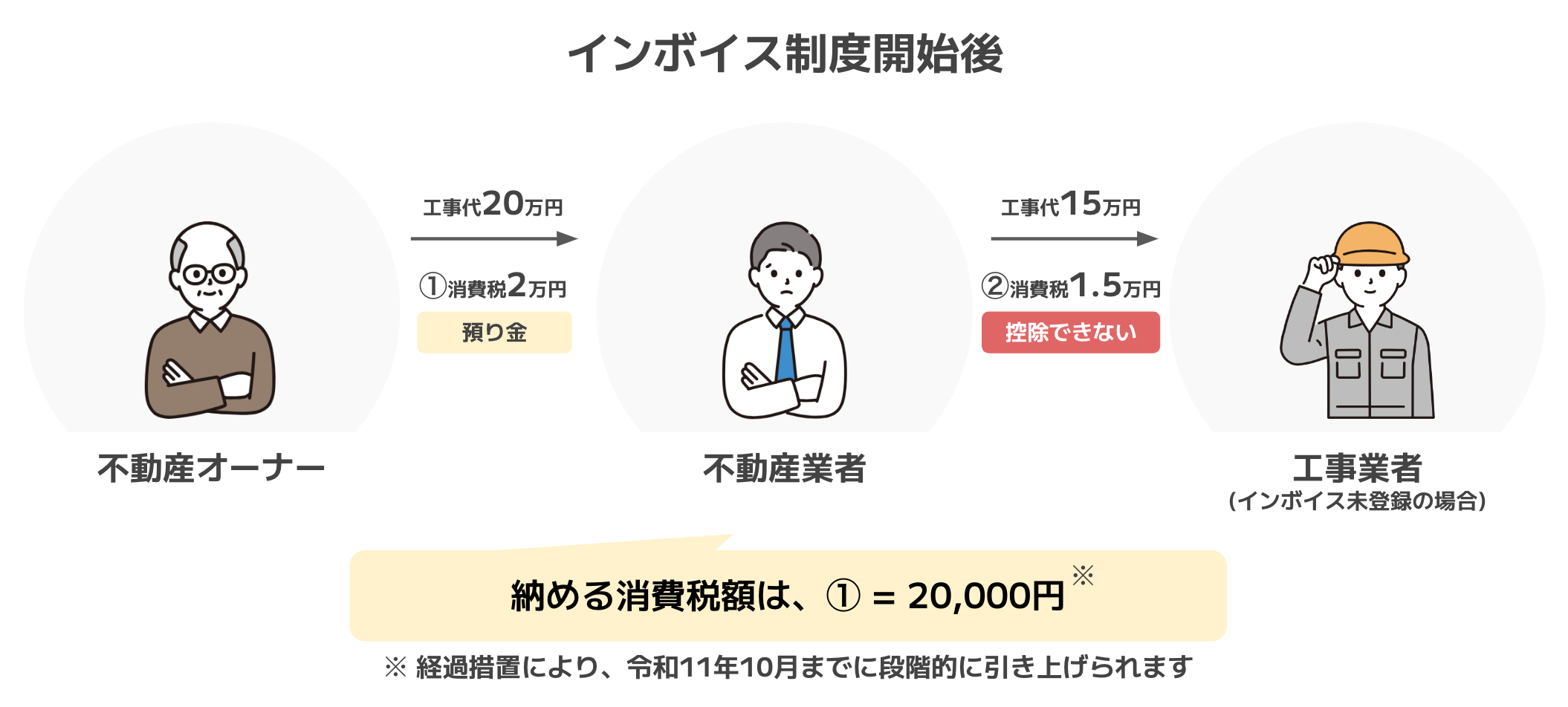 制度開始後、不動産オーナーより受注した工事を行うとき、その工事をインボイス未登録業者に依頼すると、消費税納税額が増えてしまうことになります。