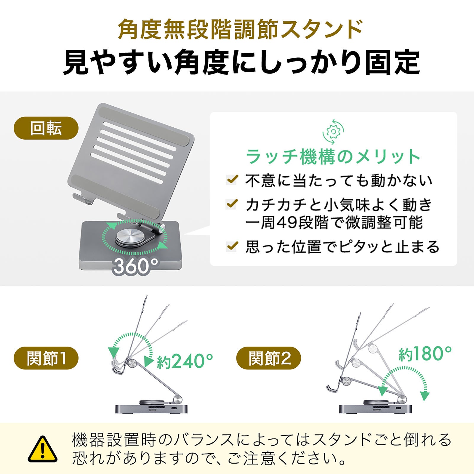 ドッキングステーション スタンド一体型 8in1 Type-C接続 HDMI 4K対応 有線LAN対応 タブレット iPad モバイルディスプレイ設置