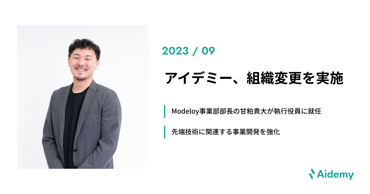 また、アイデミーはこの度の組織変更に際し、新規事業の開発に重点を置く部署として事業開発室を新たに設置いたしました。SX/GXやマテリアルズ・インフォマティクスを中心とした研究開発領域のDXを支援するサービス等の開発を担い、今後はより幅広い分野で先端技術分野に関する事業開発を進めてまいります。アイデミーは、本組織変更により、経営体制を更に磐石なものとし、企業での取り組みをはじめとしたデジタル変革伴走支援を一層加速します。