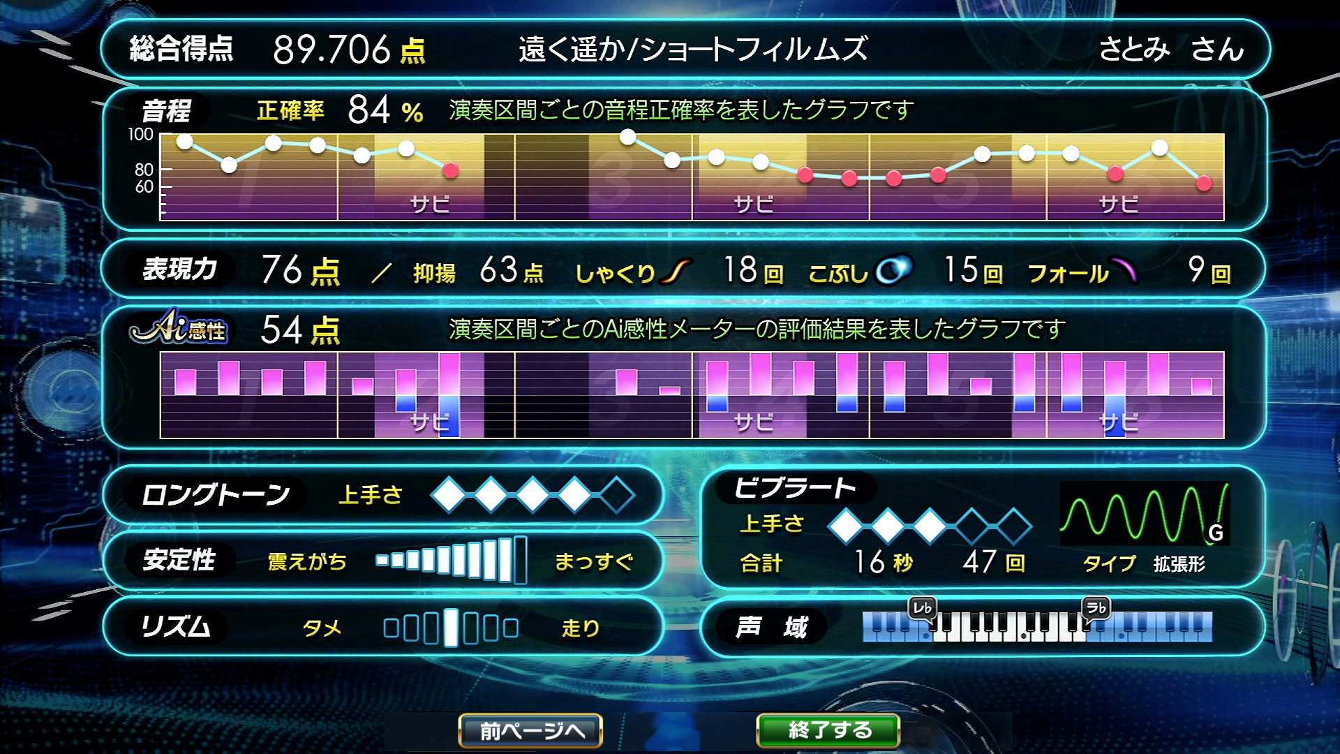 カラオケ音量調整、お気に入り登録、歌唱履歴、精密採点Ai