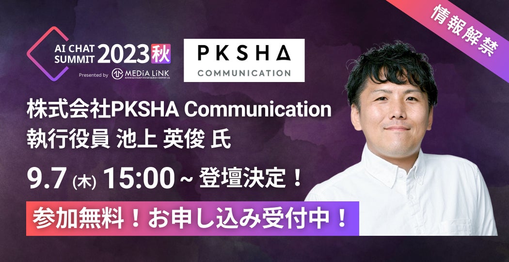 ChatGPTの登場以降もAIは休むことなく日々進化し、私たちの日常とビジネスの両方に浸透しはじめています。もはやAIが無い未来を考えることは難しく、我々はAIと共に歩む道を本気で考える時代に突入しています。そんな未来について、AIチャットボットやAI関連技術に心を燃やす多種多様な専門家と一緒に考える1日。それが『AI CHAT SUMMIT2023秋』です。AIの進化の波に乗り、AIと共創する未来へ。