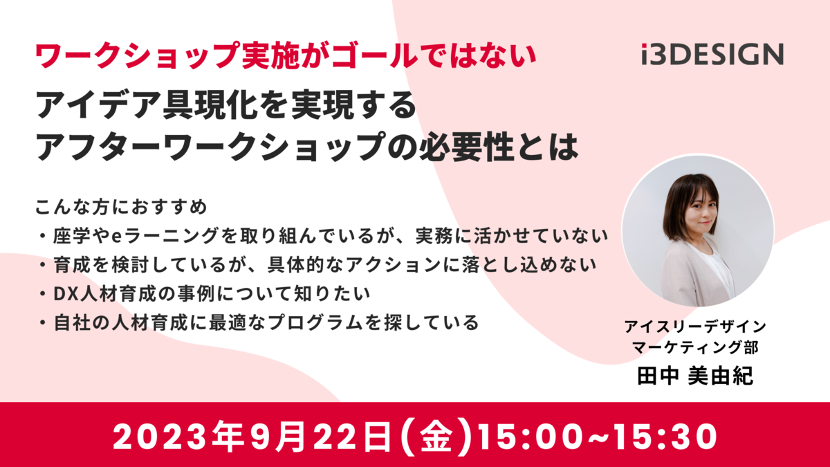 本説明会では、DX推進の現状と課題やDX人材に必要なスキルやマインドについて、またそれを実現する超実践型ワークショップ「ヒューマンイノベーションプログラム」をご紹介いたします。実際にご導入いただいているクライアント様の事例やアウトプットイメージもご紹介しますので、是非この機会にご参加ください。