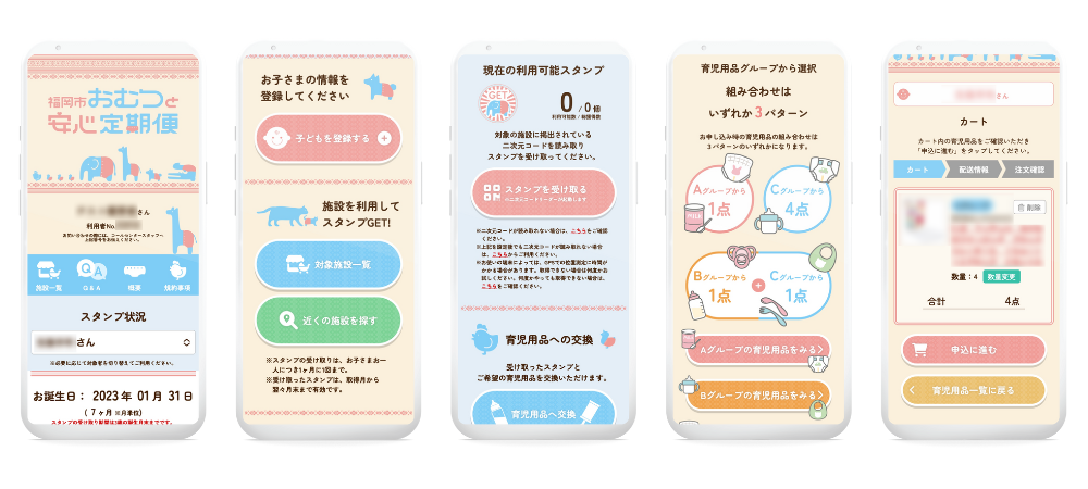 「おむつと安心定期便」は、市内在住の0歳から3歳の誕生月までの子どもがいる世帯を対象とした、福岡市の子育て支援事業です。子育て関連施設やサービスを利用した際に電子スタンプを受け取り、そのスタンプを専用サイトでおむつ等の育児用品と交換すると、自宅に無料で配送されます。子育て世帯の経済的負担の軽減に加え、定期的な見守りによる孤立化の防止、安心して子育てができる環境づくりの推進も目的として実施されました。