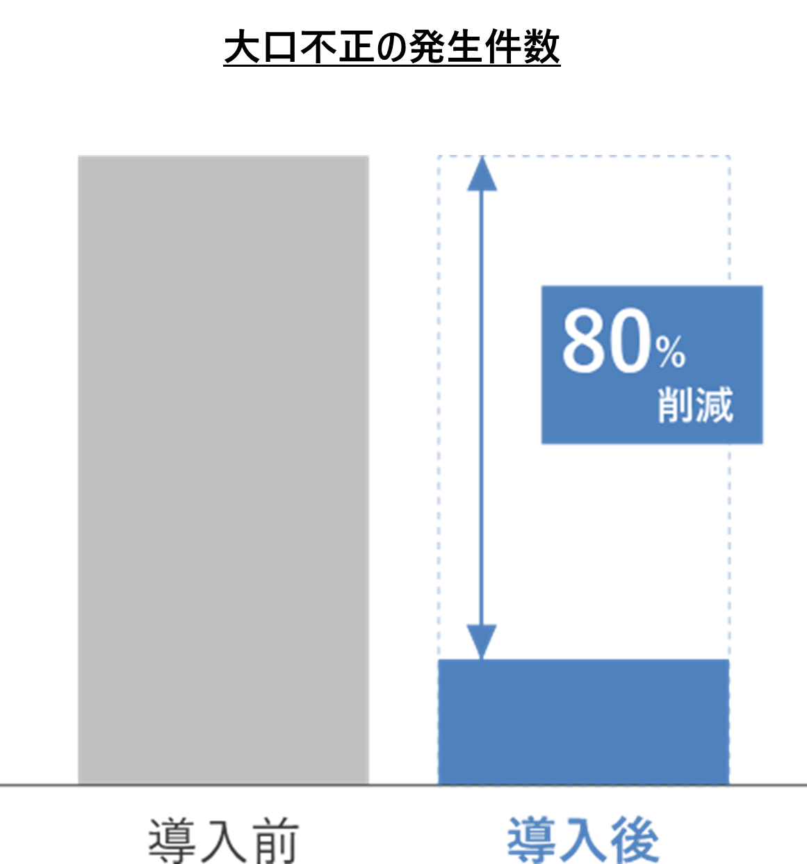 当社がパートナー企業と実証実験を3ヶ月間実施した平均的な効果として、大口不正(一斉かつ大規模に行われる不正攻撃)の発生件数が、導入前と導入後を比較して約80%削減することができております。