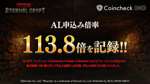 「Adventurer Genesis Collection」の「Coincheck INO」での販売は、9月6日20時開始、9月8日20時終了(いずれも予定)で、AL当選者に対して先着順で販売いたします。