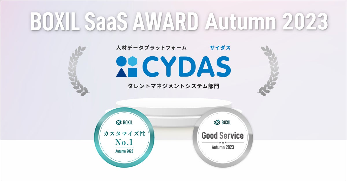 「CYDAS」が「BOXIL SaaS AWARD Autumn 2023」タレントマネジメントシステム部門で「Good Service」「カスタマイズ性No.1」に選出