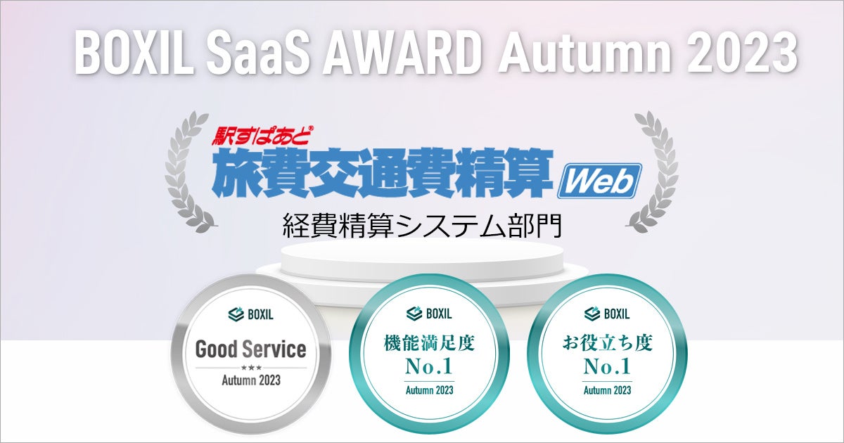 駅すぱあと 旅費交通費精算Web、「BOXIL SaaS AWARD Autumn 2023」経費精算システム部門で「Good Service」「機能満足度No.1」「お役立ち度No.1」に選出