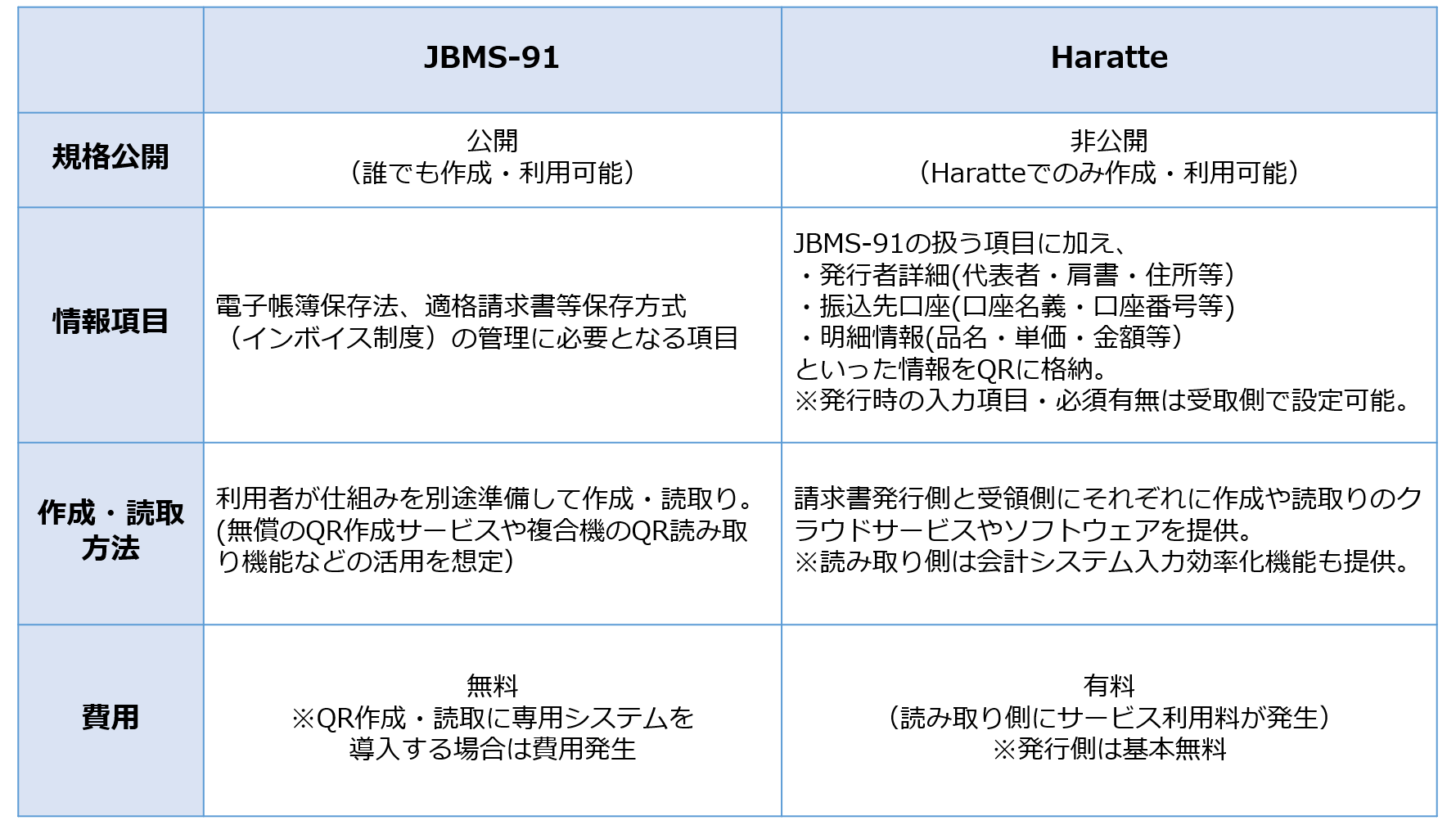 請求書受領先企業がHaratte未導入団体の場合、それらの宛先に対して作成する請求書にはJBMS-91形式でのQRを付与する形で、請求書受領先企業がHaratte導入団体の場合は従来通りHaratte標準のQRを付与する形で請求書を作成・発行します。